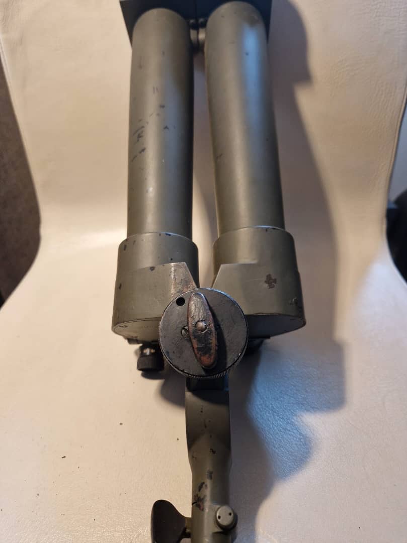 Rare and impressive WWII German scissor binoculars, commonly known as “rabbit ears”, officially designated S.F.14.Z.Gi. (Scherenfernrohr 14 Ziel Gitter). These large stereo observation binoculars were used by German military units for long-range battlefield observation and artillery spotting during World War II.